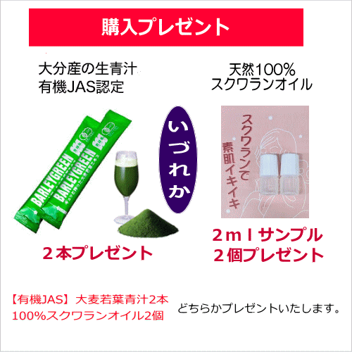 - ●購入特典(有機青汁3g×6本またはスクワランオイル2ml×6個)